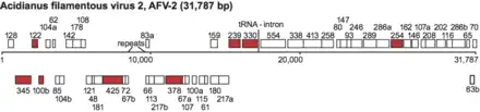 Genome map of AFV-2, Deltalipothrixvirus