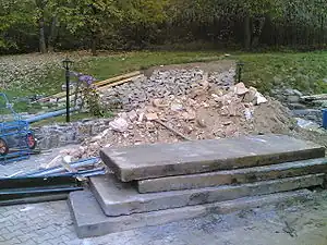 Concrete and brick can be recycled by crushing it into rubble.[5] Once sorted, screened and contaminants are removed, reclaimed concrete or brick can be used in concrete aggregate, fill, road base, or riprap.[5] Mobile concrete crushers also allow for recycling of concrete on-site.