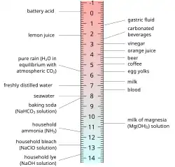 The most common causes of erosion are acidic foods and drinks. In general, foods and drinks with a pH below 5.0–5.7 have been known to trigger dental erosion effects.[6] Numerous clinical and laboratory reports link erosion to excessive consumption of such drinks. Those thought to pose a risk are soft drinks, some alcohol and fruit drinks, fruit juices such as orange juice (which contain citric acid) and carbonated drinks such as colas (in which the carbonic acid is not the cause of erosion, but citric and phosphoric acid).[7] Additionally, wine has been shown to erode teeth, with the pH of wine as low as 3.0–3.8.[6] Other possible sources of erosive acids are from exposure to poorly regulated chlorinated swimming pool water,[8] and regurgitation of gastric acids.[9] In children with chronic diseases, the use of medicines with acid components is a risk factor too.[10] Dental erosion has also been recorded in the fossil record and was likely caused by the consumption of acidic fruits or plants.[1]