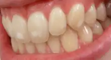 | Mild fluorosis: in its usual mildest form, fluorosis appears as opaque white patches on the enamel | |