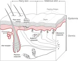 - 1 2 3 4 Debenedictis C, Joubeh S, Zhang G, Barria M, Ghohestani RF (2001-09-01). "Immune functions of the skin". Clinics in Dermatology. 19 (5): 573–585. doi:10.1016/S0738-081X(00)00173-5. PMID 11604304.