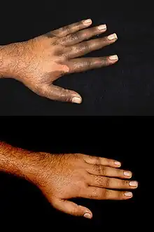 - ↑ Qadir SN, Ejaz A, Raza N (2008). "Dermatosis neglecta in a case of multiple fractures, shoulder dislocation and radial nerve palsy in a 35-year-old man: a case report". J Med Case Rep. 2 (1): 347. doi:10.1186/1752-1947-2-347. PMC 2596164. PMID 19014627.