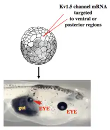 Misexpression of specific ion channels in diverse areas of frog embryos can induce the creation of ectopic organs, such as eyes on gut tissue.[8]