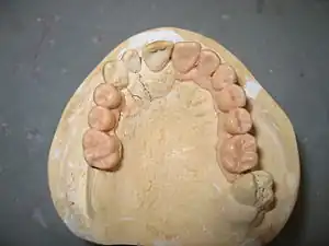 In dentistry, diagnostic wax-up is used to visualize the results of a prosthetic case prior to the treatment being executed.