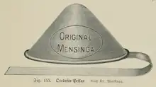 An important precursor to the invention of the diaphragm was the rubber vulcanization process, patented by Charles Goodyear in 1844. In the 1880s, a German gynecologist, Wilhelm P. J. Mensinga, published the first description of a rubber contraceptive device with a spring molded into the rim. Mensinga wrote first under the pseudonym C. Hasse, and the Mensinga diaphragm was the only brand available for many decades.[46][47][48] In the United States, the physician Edward Bliss Foote designed and sold an early form of occlusive pessary under the name "womb veil" starting in the 1860s.[49]