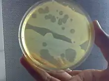 When starved for their bacterial food supply and exposed to dark, moist conditions, heterothallic or homothallic strains can undergo sexual development that results in the formation of a diploid zygote.[5] Heterothallic mating has been best studied in D. discoideum and homothallic mating has been best studied in Dictyostelium mucoroides (strain DM7). In the heterothallic sexual cycle, amoebae aggregate in response to cAMP and sex pheromones, and two cells of opposite mating types fuse, and then begin consuming the other attracted cells. Before they are consumed, some of the prey cells form a cellulose wall around the entire group. When cannibalism is complete, the giant diploid cell is a hardy macrocyst which eventually undergoes recombination and meiosis,[6] and hatches hundreds of recombinants.[7][8] In D. mucoroides (DM7) homothallic mating, cells are directed towards sexual development by ethylene.[5] Scientists also found the collective cell migration could occur without the presence of cAMP oscillations at multicellular stages, and novel models have been proposed to interpret this interesting phenomenon.[9]
