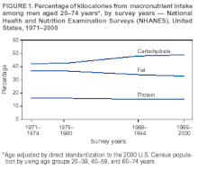 - 1 2 3 4 Centers for Disease Control Prevention (CDC) (February 2004). "Trends in intake of energy and macronutrients—United States, 1971–2000". MMWR. Morbidity and Mortality Weekly Report. 53 (4): 80–2. PMID 14762332.
