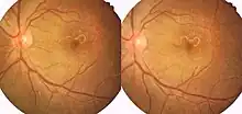 - ↑ American Academy of Ophthalmology (2012). Retina and vitreous (2011-2012 ed.). American Academy of Ophthalmology. ISBN 9781615251193.
