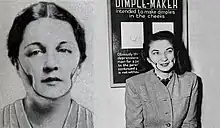 Women without dimples are said to envy the women that have them because dimples are "pitfalls for the men" that "[are] something purely natural and unattainable by art".[35] While it is not possible to give a definite explanation as to why dimples are attractive on a woman, researchers believe this "neutral feature" can be linked to paternity confidence, which is the ability of a man to easily distinguish his own offspring.[37] This has led to artificial attempts to create them: the Ohio-based Dolly Dimpler company advertized in Photoplay about a device that created dimples in customers' cheeks;[38] in 1936, Isabella Gilbert invented the Dimple Maker, a face-fitting brace which pushed dents into the cheeks to emulate dimples,[39] but it is unknown whether the artificial dimples could last this way (the American Medical Association argued that frequent users could develop cancer);[40] and in the 21st century, people undergo dimple surgery.[41]