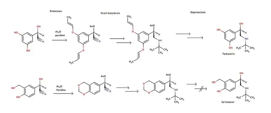 - ↑ Effenberger, Franz; Jäger, Jürgen (1997). "Synthesis of the Adrenergic Bronchodilators (R)-Terbutaline and (R)-Salbutamol from (R)-Cyanohydrins". J. Org. Chem. 62 (12): 3867–3873. doi:10.1021/jo970032d.