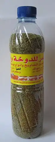 Dokha (Arabic: دوخة, "dizziness" or "vertigo") is a tobacco product, consisting of dried and ground tobacco leaves that have been flavored with herbs and spices. It originated in Iran around the 16th century.[1] Unlike hookah tobacco preparations (usually called "shisha" or "mu'assel"), dokha is dry and does not contain molasses or water. Users smoke the tobacco blend in small quantities using a pipe called a midwakh. Because the midwakh pipe is used almost exclusively for smoking dokha, the terms are often used interchangeably.[2]