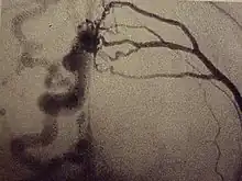 One approach used for treatment is embolization.[11] A six-vessel angiogram is employed to determine the vascular supply to the fistula.[5] Detachable coils, liquid embolic agents like NBCA, and onyx, or combinations of both are injected into the blood vessel to occlude the DAVF.[2] Preoperative embolization can also be used to supplement surgery.[12]