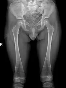 - ↑ Nasman A. "Erlenmeyer flask deformity | Radiology Case | Radiopaedia.org". Radiopaedia. Retrieved 2020-04-19.