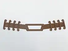 An ear saver, also known as mask strain release strap or mask extender,[1] is an accessory to personal protective equipment (PPE), relieves strain on a mask wearer's ears created through the loops of masks. Ear savers were designed as novel items during the COVID-19 pandemic by the open-source hardware community in response to requests from medical professionals reporting heavy strain on their ears.[2] Ear savers have since been commercialized for a broader population of users as the pandemic wore on.[3][4]