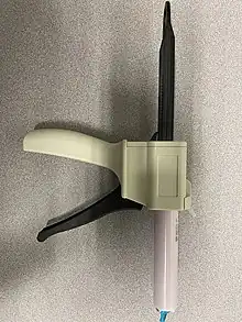 {{cite book}}: CS1 maint: location missing publisher (link) - ↑ Pirzanski, Chester (June 2002). "A practical guide to impression syringes and pistol injectors". The Hearing Journal. 55 (6): 30–35. doi:10.1097/01.HJ.0000293274.68900.dc. ISSN 0745-7472. S2CID 112625298.
