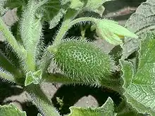 Ecballium is a genus of flowering plants in the family Cucurbitaceae containing a single species, Ecballium elaterium,[1][3] also called the squirting cucumber, as well as the noli me tangere and its English translation touch-me-not. Its unusual common name derives from the ripe fruit squirting a stream of mucilaginous liquid containing its seeds as a means of seed dispersal, an example of rapid plant movement.[4]
