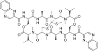 Echinomycin is a bis-intercalator peptide and is biosynthesized by a unique nonribosomal peptide synthetase (NRPS).[2][3] Echinomycin is isolated from various bacteria such as Streptomyces lasalienis. It belongs to a family of quinoxaline antibiotics. There is great interest in this group of compounds because they have very potent antibacterial, anticancer, and antiviral activities.[4]