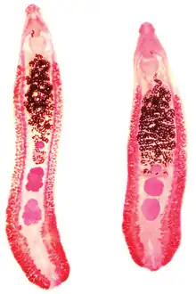 - 1 2 3 4 Fried B; Graczyk TK; Tamang L (2004). "Food-borne intestinal trematodiases in humans". Parasitology Research. 93 (2): 159–170. doi:10.1007/s00436-004-1112-x. PMID 15103556.