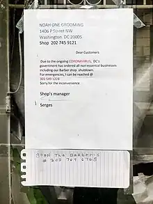 Some retailers have employed contactless home delivery or curbside pickup for items purchased through e-commerce sites.[171][172] By April, retailers had started implementing "retail to go" models where consumers could pick up their orders. An estimated 40% of shoppers were shopping online and choosing to pick up in-store, a behavior that had suddenly doubled as compared to the previous year.[173]
