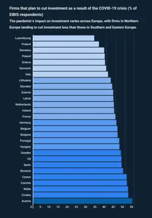 In the European Investment Bank Investment report 2020–21, 81% of the respondents cited uncertainty as the most severe obstacle to investment.[41][44] 20% of EU companies anticipate a permanent loss in employment, indicating that a sizable proportion of firms are pessimistic about their capacity to "bounce back" once the COVID-19 crisis has passed.
