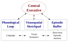 Working memory (WM), similar to STM, is the ability to temporarily store information in order to manipulate it for performing complex tasks, such as reasoning. WM is affected to a greater extent by stress than Long-term memory.[33] Stress has been shown to both improve and impair WM. In a study by Duncko et al., the positive effect of stress manifested itself as a decreased reaction time in participants, while the negative effect of stress causes more false alarms and mistakes when compared to a normal condition.[34] The researchers hypothesize that this could be representative of faster information processing, something helpful in a threatening situation. Anxiety has also been shown to adversely affect some of the components of WM, those being the phonological loop, the visuo-spatial sketchpad, and the central executive.[35] The phonological loop is used for auditory STM, the visuo-spatial sketchpad is used for visual and spatial STM, and the central executive links and controls these systems.[32] The disruption of these components impairs the transfer of information from WM to LTM, thus affecting learning. For instance, several studies have demonstrated that acute stress can impair working memory processing likely though reduced neural activity in the prefrontal cortex in both monkeys and humans.[36]