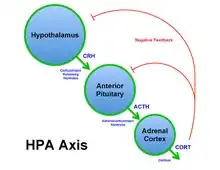 - ↑ Viau, V.; Soriano, L.; Dallman, M (2001). "Androgens alter corticotropin releasing hormone and arginine vasopressin mrna within forebrain sites known to regulate activity in the hypothalamic-pituitary-adrenal axis". Journal of Neuroendocrinology. 13 (5): 442–452. doi:10.1046/j.1365-2826.2001.00653.x. PMID 11328455. S2CID 12418309.
