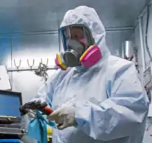 - ↑ Janssen L, Johnson AT, Johnson JS, Mansdorf SZ, Medici OR, Metzler RW, Rehak TR, Szalajda JV (29 August 2019). Chemical, Biological, Radiological, and Nuclear (CBRN) Respiratory Protection Handbook (PDF). Pittsburgh, PA: CDC: National Institute for Occupational Safety and Health. p. 229. doi:10.26616/NIOSHPUB2018166. Publication No. 2018-166. Retrieved 12 August 2020.