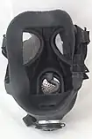 ![]() Protective P100 half-face elastomeric filter mask worn by a NYPD officer; proprietary 3M pink pancake filters | |