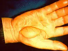 An electrical burn is a burn that results from electricity passing through the body causing rapid injury. Approximately 1000 deaths per year due to electrical injuries are reported in the United States, with a mortality rate of 3-5%.[1][2] Electrical burns differ from thermal or chemical burns in that they cause much more subdermal damage.[3] They can exclusively cause surface damage, but more often tissues deeper underneath the skin have been severely damaged. As a result, electrical burns are difficult to accurately diagnose, and many people underestimate the severity of their burn. In extreme cases, electricity can cause shock to the brain, strain to the heart, and injury to other organs.[4]