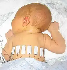 ![]() Adhesive electrodes on chest of a 10-day-old baby [40] |