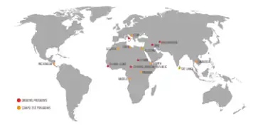 Emergency has completed projects in Afghanistan, Algeria, Angola, Cambodia, Central African Republic, Eritrea, Iraq, Italy, Libya, Nepal, Nicaragua, Palestine, Rwanda, Serbia, Sierra Leone, Sri Lanka, and Sudan.[28] Completed projects often result in the transition of Emergency-run hospitals to local health authorities.