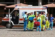 Emergency medical services in Italy currently consist primarily of a combination of volunteer organizations providing ambulance service, supplemented by physicians and nurses who perform all advanced life support (ALS) procedures. The emergency telephone number for emergency medical service in Italy is 118. Since 2017 it has also been possible to call by the European emergency number 112, although this is a general police/fire/medical number.[1]