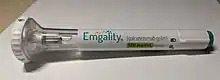 - 1 2 3 4 5 6 7 8 9 10 11 12 "Emgality EPAR". European Medicines Agency (EMA). 24 September 2018. Retrieved 28 April 2020. Text was copied from this source which is copyright European Medicines Agency. Reproduction is authorized provided the source is acknowledged.