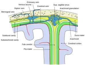 - 1 2 Klein BM, Bordoni B (25 July 2023). "Anatomy, Head and Neck, Emissary Veins". StatPearls. Treasure Island, Florida: StatPearls Publishing. PMID 33085343. NBK563196.