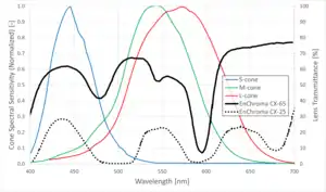 - ↑ US 10606100, Schmeder, Andrew W. & McPherson, Donald M., "Optical filters affecting color vision in a desired manner and design method thereof by non-linear optimization", published 2020-03-31, assigned to Enchroma Inc.