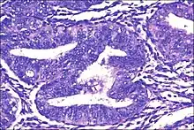 - ↑ Skov, B. G.; Broholm, H; Engel, U; Franzmann, M. B.; Nielsen, A. L.; Lauritzen, A. F.; Skov, T (1997). "Comparison of the reproducibility of the WHO classifications of 1975 and 1994 of endometrial hyperplasia". International Journal of Gynecological Pathology. 16 (1): 33–7. doi:10.1097/00004347-199701000-00006. PMID 8986530. S2CID 26446736.