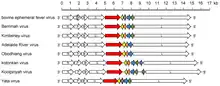 Ephemerovirus genomes are linear, monopartite, and around 14.6–14.8 kb in length. The genome codes for five to nine proteins.[2][3]