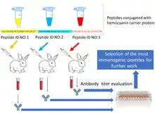 According to the developers' publications,[15][2] vaccine antigens are three peptides of the spike protein and a chimeric protein consisting of two parts (viral nucleocapsid protein and bacterial maltose-binding protein). In addition, the polyhistidine-tag - a short peptide that is introduced into a vaccine composition to purify a chimeric protein from a bacterial lysate - is also a vaccine antigen against which antibodies can form in those who have received the vaccine. A person vaccinated with EpiVacCorona can develop antibodies not only to the peptides of the spike protein, but also to other antigens present in the vaccine. According to Anna Popova, head of the Federal Service for Supervision of Consumer Rights Protection and Human Welfare, it takes 42 days for those vaccinated with EpiVacCorona to develop immunity.[16]