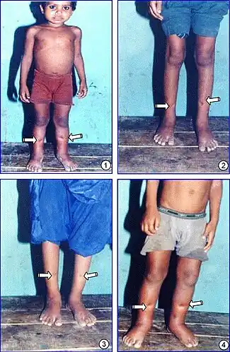 | Epidemic dropsy patients with the characteristic bilateral pitting edema of the extremities (indicated by arrows) | |