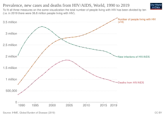 - 1 2 3 Roser M, Ritchie H (3 April 2018). "HIV / AIDS". Our World in Data.