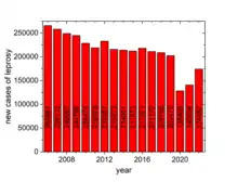 - ↑ "New case detection trends in leprosy" (PDF). WHO. Archived from the original (PDF) on 2020-09-15.