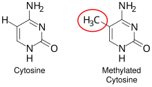 DNA methylation is a type of epigenetic modification in which methyl groups are added to cytosines of DNA. It is located on the fifth position of cytosine which has importance in the development of mammals.[7] DNA methylation is an important regulator of gene expression and is usually associated with gene repression. DNA Methylation is a mechanism which can suppress gene expression. It can be inherited through cell divisions in development, and is involved with cell memory. Changes in methylation occur due to mutated or deregulated chromatin regulators. This process is also used in marking cancers for diagnosis.