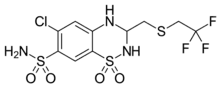 6-Chloro-1,1-dioxo-3-{[(2,2,2-trifluoroethyl)sulfanyl]methyl}-1,2,3,4-tetrahydro-1λ6,2,4-benzothiadiazine-7-sulfonamide | |
