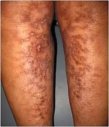 - ↑ Rudolph, Christina M; Soyer, H Peter; Wolf, Peter; Kerl, Helmut (February 1998). "Hot-water-bottle rash: not only a sign of chronic pancreatitis". The Lancet. 351 (9103): 677. doi:10.1016/S0140-6736(05)78465-8.