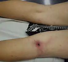 - ↑ "eschar" at Dorland's Medical Dictionary