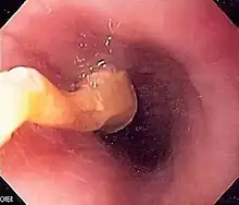 - ↑ Chauvin, A; Viala, J; Marteau, P; Hermann, P; Dray, X (Jul 2013). "Management and endoscopic techniques for digestive foreign body and food bolus impaction". Digestive and Liver Disease. 45 (7): 529–42. doi:10.1016/j.dld.2012.11.002. PMID 23266207.