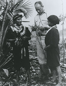 The idea of ethnobotany was first proposed by the early 20th century botanist John William Harshberger.[9] While Harshberger did perform ethnobotanical research extensively, including in areas such as North Africa, Mexico, Scandinavia, and Pennsylvania,[9] it was not until Richard Evans Schultes began his trips into the Amazon that ethnobotany became a more well known science.[10] However, the practice of ethnobotany is thought to have much earlier origins in the first century AD when a Greek physician by the name of Pedanius Dioscorides wrote an extensive botanical text detailing the medical and culinary properties of "over 600 mediterranean plants" named De Materia Medica.[5] Historians note that Dioscorides wrote about traveling often throughout the Roman empire, including regions such as "Greece, Crete, Egypt, and Petra",[11] and in doing so obtained substantial knowledge about the local plants and their useful properties. European botanical knowledge drastically expanded once the New World was discovered due to ethnobotany. This expansion in knowledge can primarily be attributed to the substantial influx of new plants from the Americas, including crops such as potatoes, peanuts, avocados, and tomatoes.[12] The French explorer Jacques Cartier learned a cure for scurvy (a tea made from the needles of a coniferous tree, likely spruce) from a local Iroquois tribe.[13]
