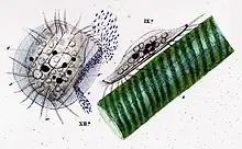 Species of Euplotes were first recorded in 1773 by the Danish naturalist O.F. Müller, who placed them in the genus Trichoda.[6] In 1830,German microscopist C.G. Ehrenberg created the genus Euplotes.[7] By 1975, over 80 species and varieties had been described and assigned to Euplotes.[3]