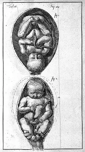 ![]() Child presenting head first (top) and feet first (bottom)[1] | |