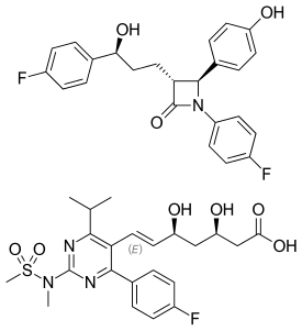 ![]() Ezetimibe (top) and rosuvastatin (bottom) | |